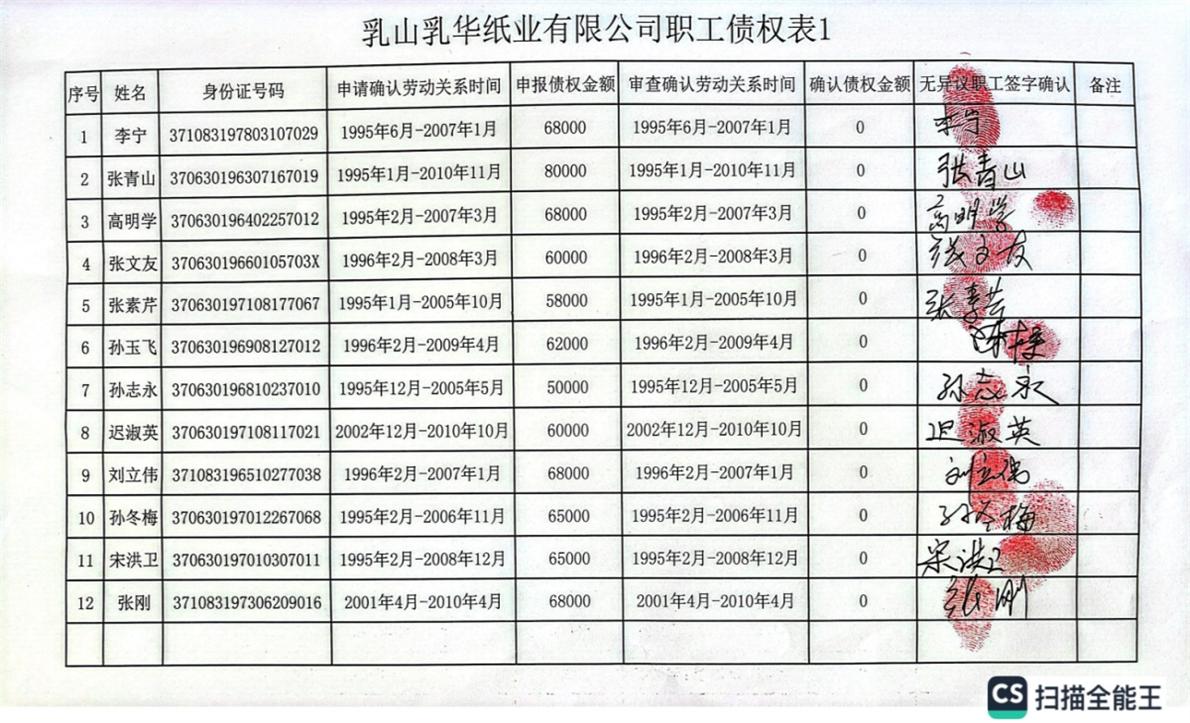 2020年1月10日贵院裁定受理乳山乳华纸业有限公司(下称“债务人或乳华纸业”)破产清算;2020年1月14日,贵院指定山东齐鲁(威海)律师事务所担任乳华纸业破产清算案件的管理人。