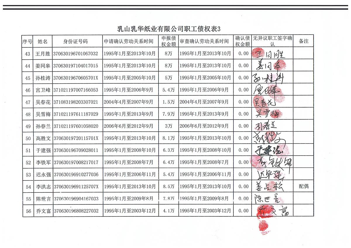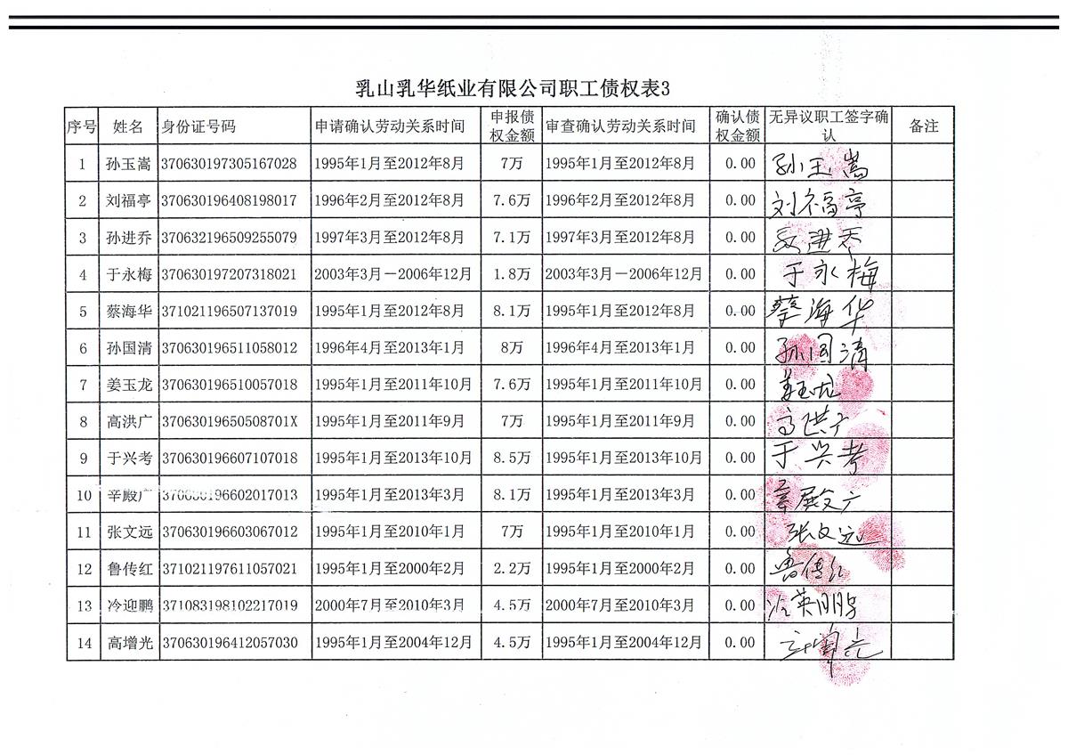 2020年1月10日乳山市人民法院裁定受理乳山乳华纸业有限公司(下称“债务人或乳华纸业”)破产清算,2020年1月14日,乳山市人民法院指定山东齐鲁(威海)律师事务所担任乳华纸业破产清算案件的管理人。